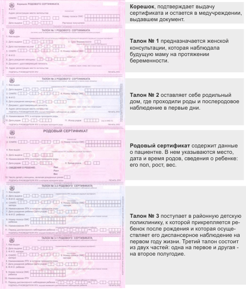 - Родовой сертификат. Выдается беременной на руки для последующего предоставления (вместе с Талоном № 2 и обменной картой) в выбранный роддом.